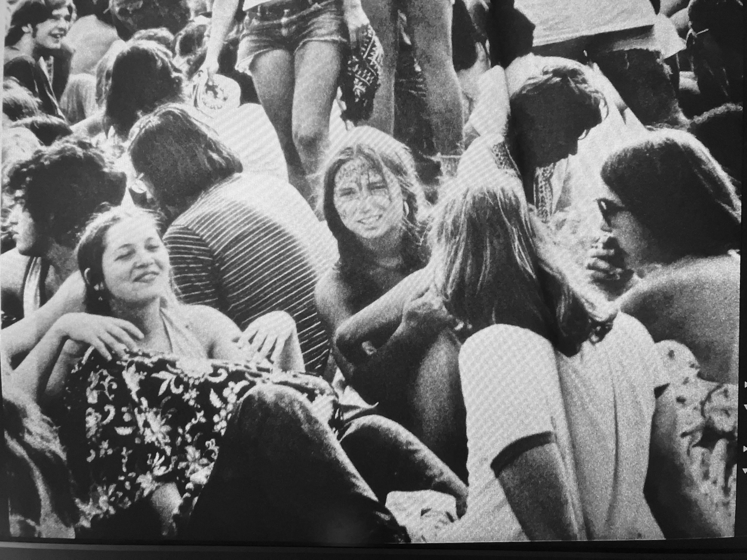 I was a Deadhead when I was in high school, so this was in the early 1970s (I graduated in 1974). I went to every concert when the Dead were in town (NYC and Long Island) with my closest friends, Chris Hegarty, who just died last August, and Adrienne Turyn. That is Adrienne dead center, and Chris is to her left, leaning back and smiling. More below …
